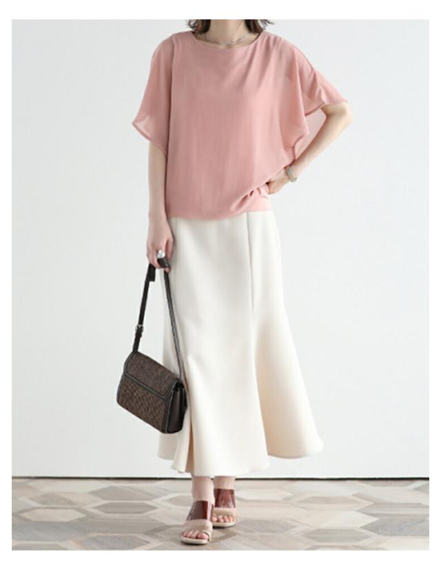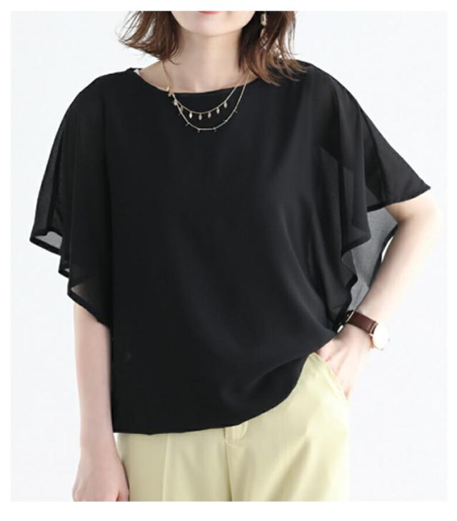 | 着るだけでふんわり上品になるドルマンスリーブシフォンブラウス シンプルだけどちょっぴり可愛い、涼しげですっきり見えて春夏らしく軽やか 身体のラインを隠すゆったりしたシルエットで、おしゃれに体型カバーも叶う! 袖は肘が隠れる長さで気になる二の腕もカバー。 ボトムスとの相性が抜群で、お出掛けでも通勤通学スタイルでも幅広く使える1枚 | |