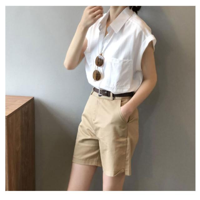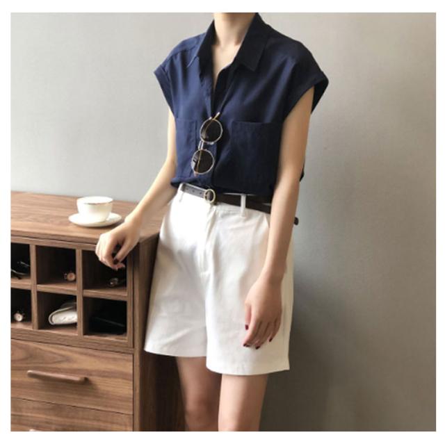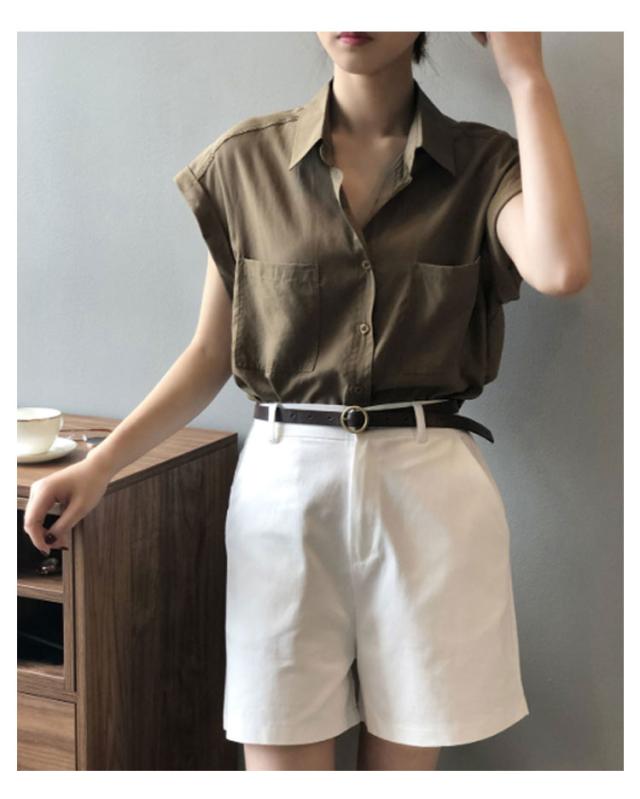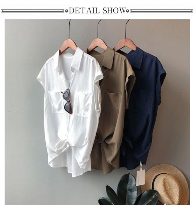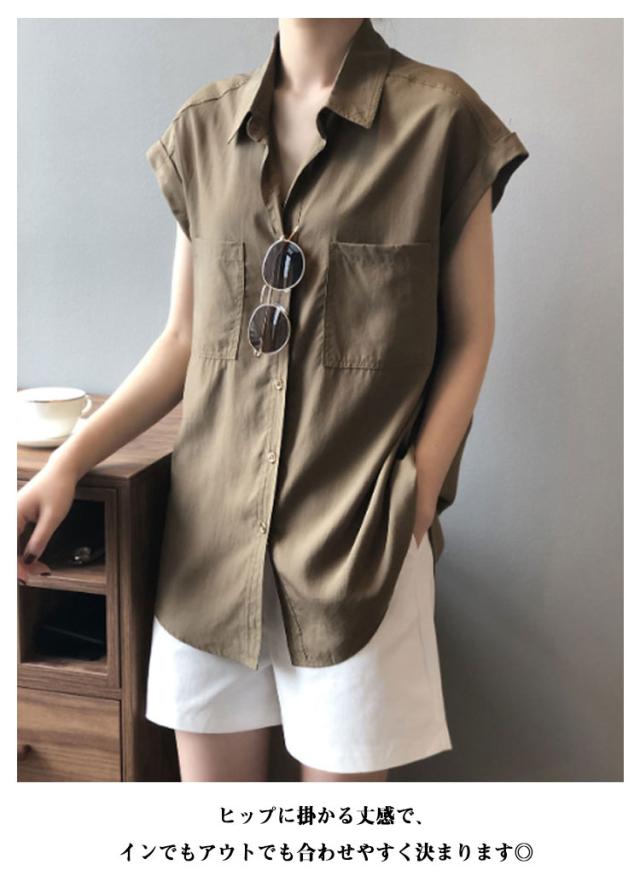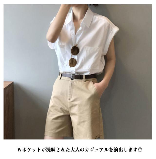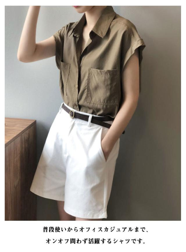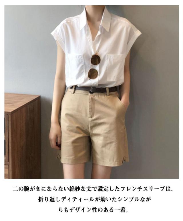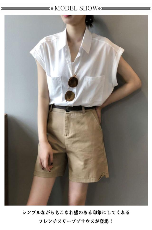 ブラウス 半袖シャツ フレンチスリーブ フレンチスリーブ レディース シャツ 半袖 胸ポケット付き シャツブラウス 薄手 折り返し袖 ゆったり 夏 シンプル 体型カバー 無地 レギュラーカラー カジュアル きれいめ おしゃれ 夏物 白