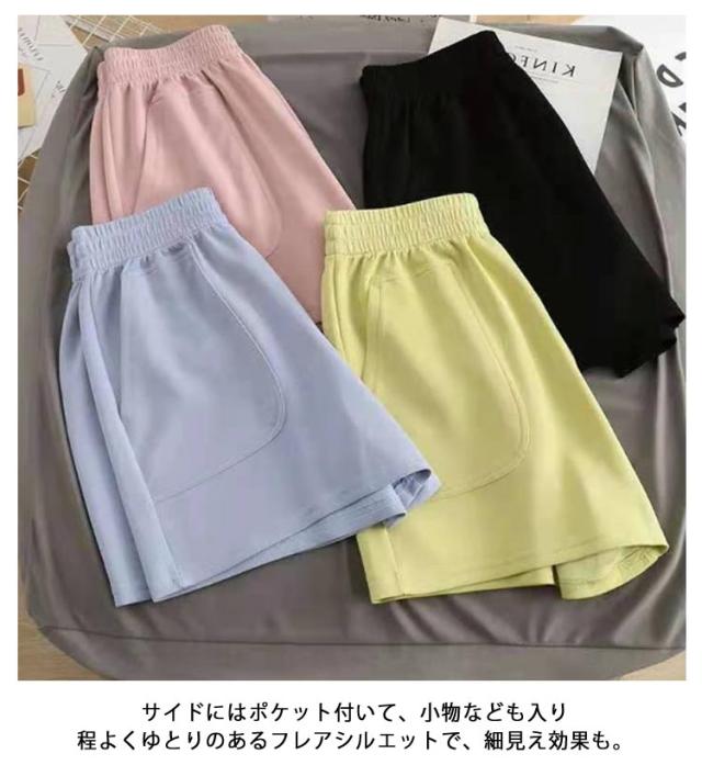 ハーフパンツ ショート丈 女性 スウェットパンツ レディース スウェットショートパンツ ボトムス ショートパンツ ワイドパンツ キュロット ゆったり ウエストゴム Aライン サマーパンツ 快適 サラサラ スウェットショートパンツ イージーパンツ