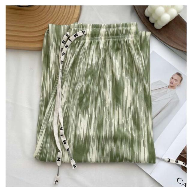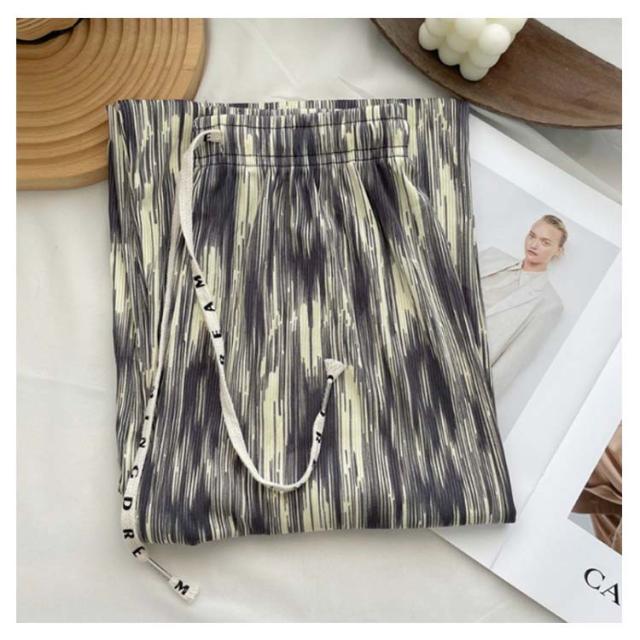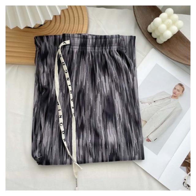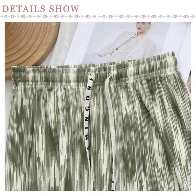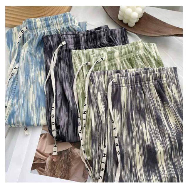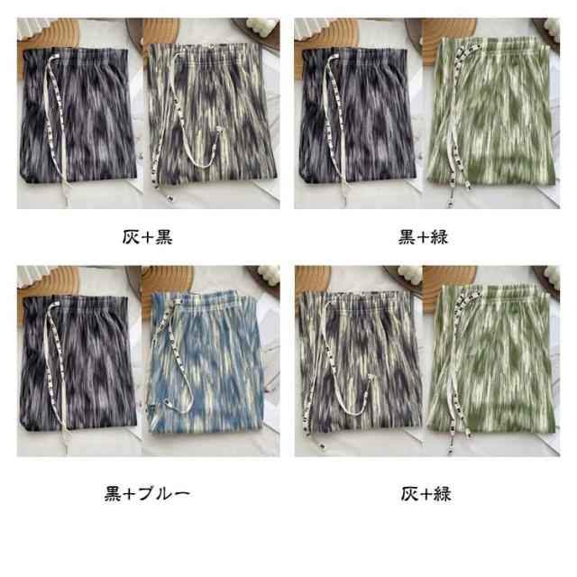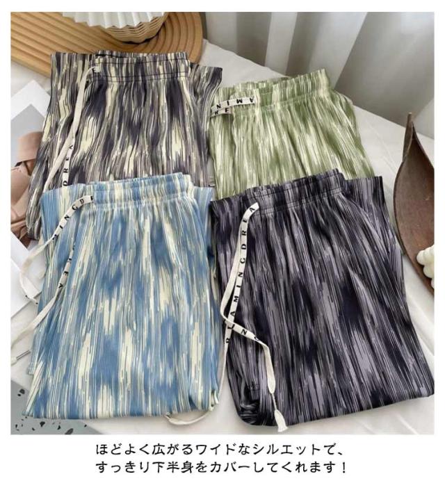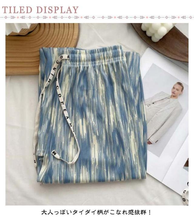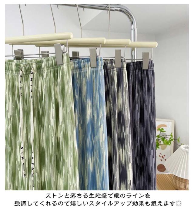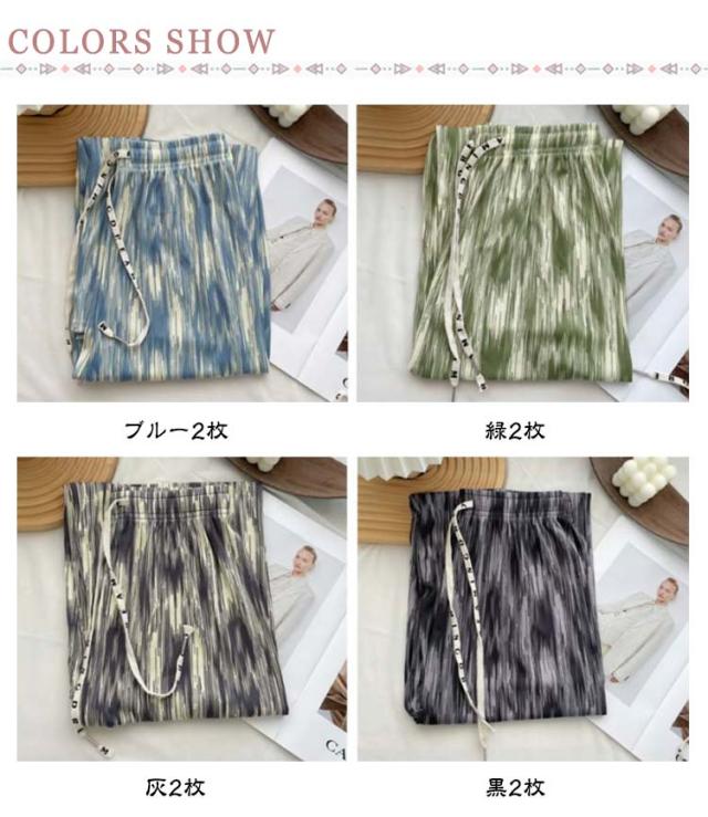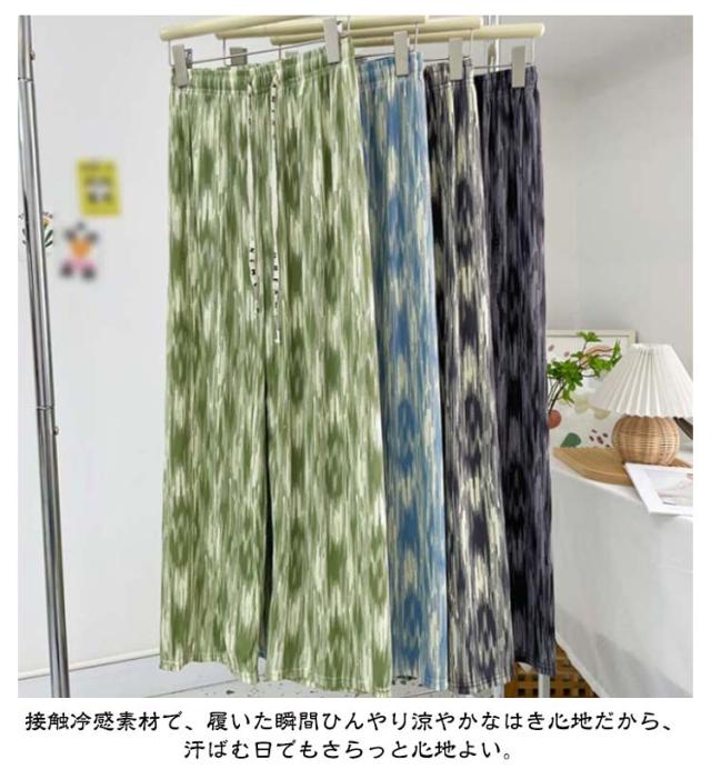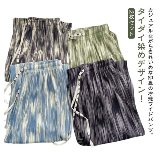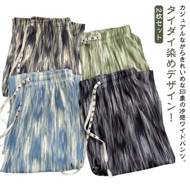 ボトムス タイダイ柄 ワイドパンツ 【2枚セット】 接触冷感 総柄 冷感 ワイド 夏 吸汗速乾 柄パンツ ストレートパンツ 薄手 涼しい 涼感 さらさら 春 イージーパンツ プリーツパンツ レディース 大人 カジュアル ウエストゴム 大きいサイズ