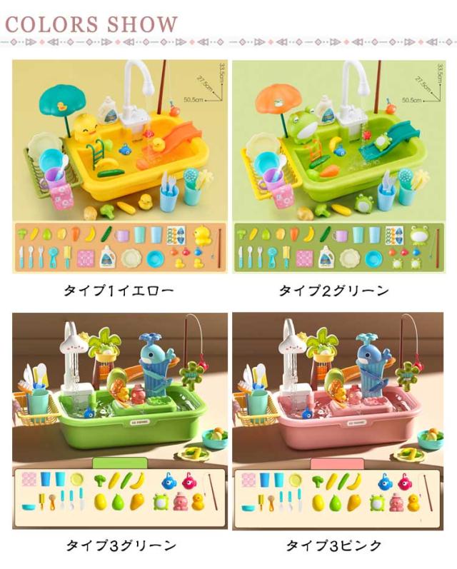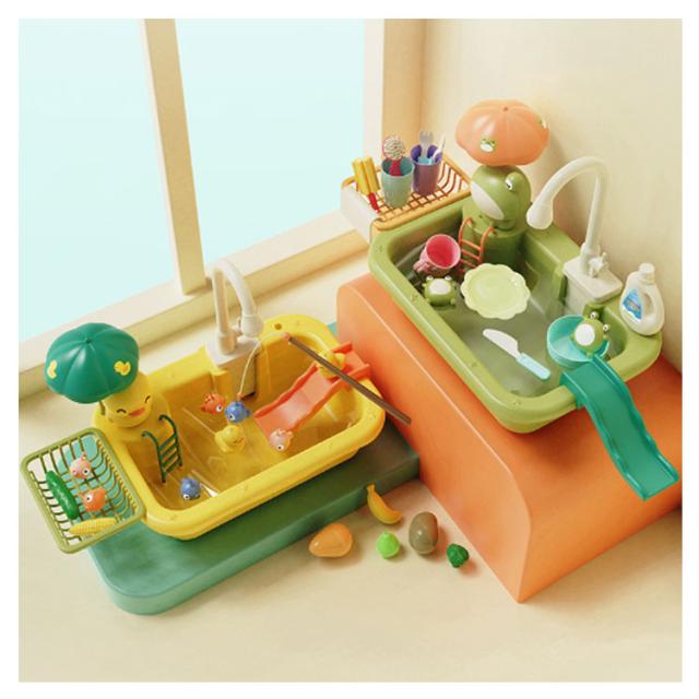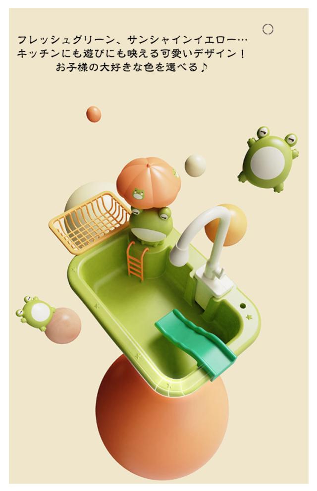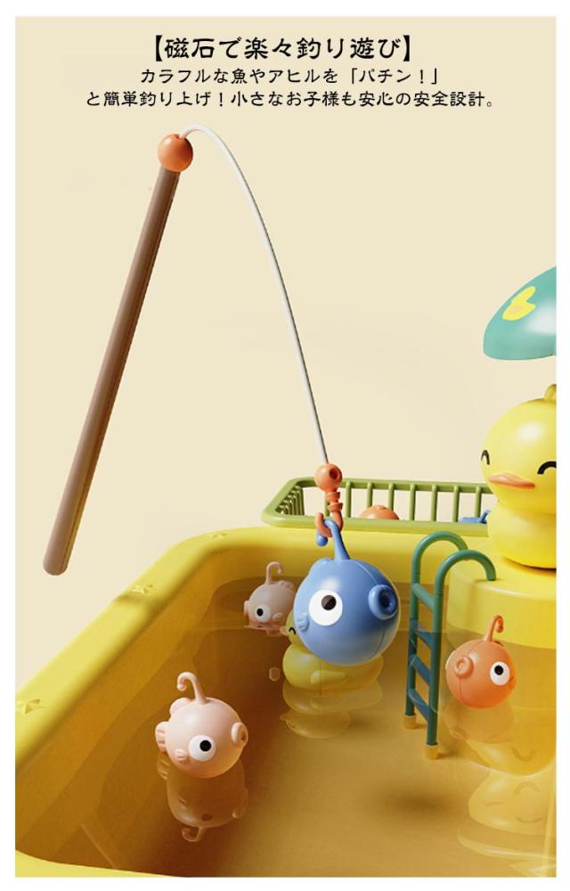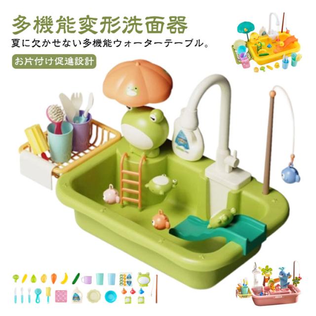 | 夏に欠かせない多機能ウォーターテーブル。 【多機能変形洗面器】ただの水遊びじゃない!洗面器が大変身!釣り・滑り台・噴水付きで、毎日が新しい遊びの冒険に! 【磁石で楽々釣り遊び】カラフルな魚やアヒルを「パチン!」と簡単釣り上げ!小さなお子様も安心の安全設計。 【アヒル型ウォータースライダー】水の流れと共にスイスイ滑る!手作り水流でワクワクが止まらない! 【お片付け促進設計】付属の水切りカゴが収納場所に。遊んだ後はおもちゃをぴかぴかに乾燥&整理整頓! フレッシュグリーン、サンシャインイエロー…キッチンにも遊びにも映える可愛いデザイン!お子様の大好きな色を選べる♪ | |