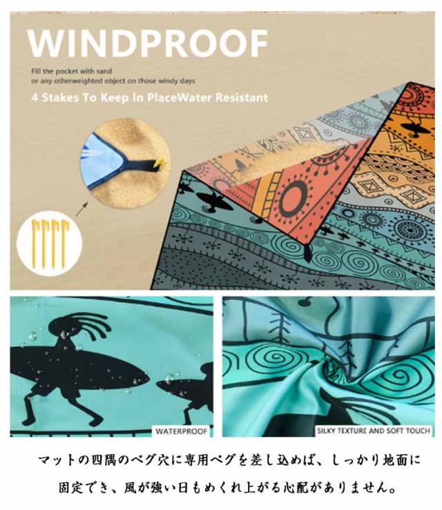 | おしゃれな柄の大きめビーチタオルです。 吸水性、速乾性に優れたタオル生地で、タオルとしてはもちろん日よけにも使えます。 家族みんなでゆったり過ごせる、約180x220cmの大きめサイズ。 マットの四隅のペグ穴に専用ペグを差し込めば、しっかり地面に固定でき、風が強い日もめくれ上がる心配がありません。 キャンプやピクニックはもちろん、運動会やフェス・屋外ライブでのご使用もおすすめ。 また、お部屋のインテリアにマッチするデザインなので、お家でラグのように使用することもできます。 | |