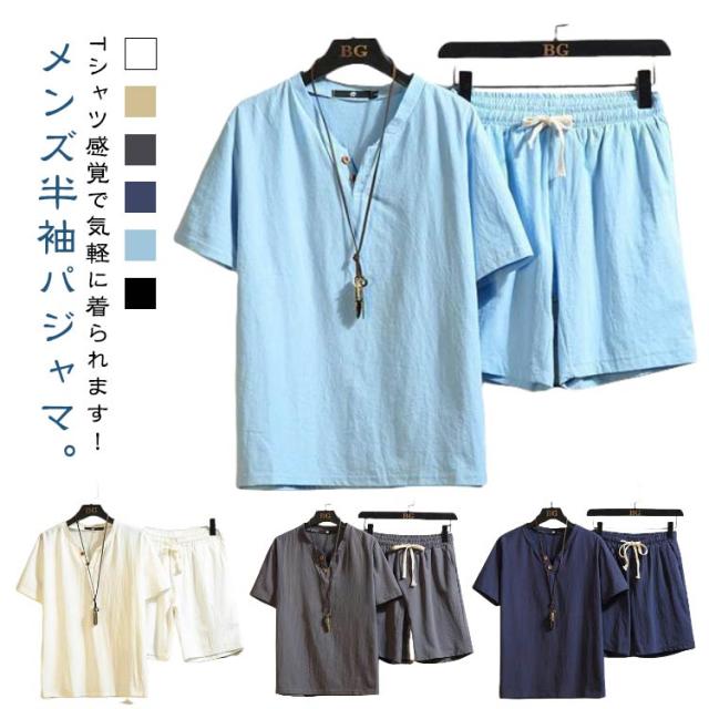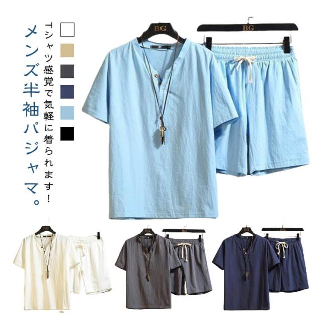 | Tシャツ感覚で気軽に着られます!メンズ半袖パジャマ。 暑い日本の夏にぴったりな綿麻素材は通気性・吸水性に優れ、嫌な汗でベタつく事が少なく、夏場のストレスを軽減してくれます。 ウエストは総ゴムのイージーパンツ仕様なので、洋服の様なしめつけも少なく、室内着としておうち時間をリラックスして過ごして頂けます。 肌触りが良く、また風通しも良いので、蒸し暑い夏も快適にすごしていただけます。見た目にも涼し気なので、夏祭りや、花火大会、普段着に大人気。 シワになりにくいので、ルームウェアやパジャマ、夏のイベントなどに最適な一枚、プレゼントとしてもおすすめです。 | |