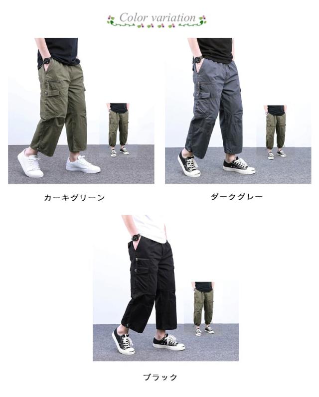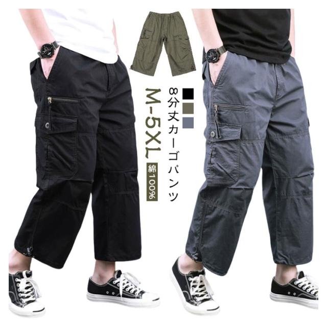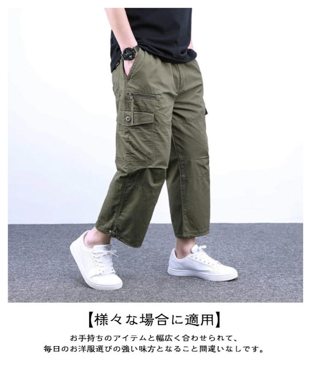8分丈パンツ 綿 綿100% パンツ 八分丈 8分丈パンツ メンズ ゆったり コットン カーゴパンツ ワイドパンツ クロップドパンツ ハーフパンツ 膝下 メンズファッション 綿100% メンズパンツ アメカジ ストリート イージーパンツ ズボン 40代 50代 夏用 夏 父の日