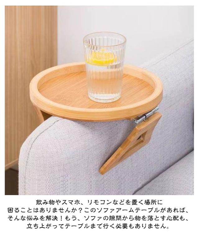 省スペース アームトレイ 丸 ソファ テーブル トレイ 木製 サイドテーブル 折りたたみ 北欧 アームテーブル ドリンクホルダー 竹 ソファーテーブル カップ 小物置き 収納 ソファトレイ ナチュラル 新生活 新婚 プレゼント