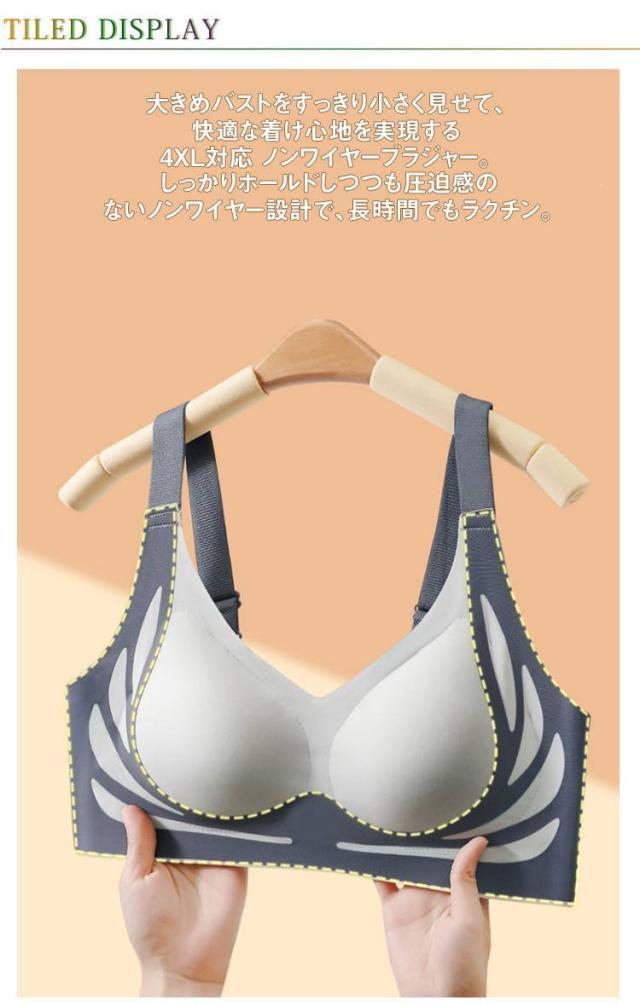 | 大きめバストをすっきり小さく見せて、快適な着け心地を実現する4XL対応 ノンワイヤーブラジャー。 しっかりホールドしつつも圧迫感のないノンワイヤー設計で、長時間でもラクチン。 脇高設計と幅広ストラップでバストラインを整え、背中のラインも美しく見せるデザイン。 シームレス仕様でアウターに響きにくく、オフィスコーデにもぴったり。 小胸さんはふっくら寄せ上げ、大胸さんはすっきり見せ効果◎ デイリー使いに欠かせない大きいサイズ対応インナーです。 | |