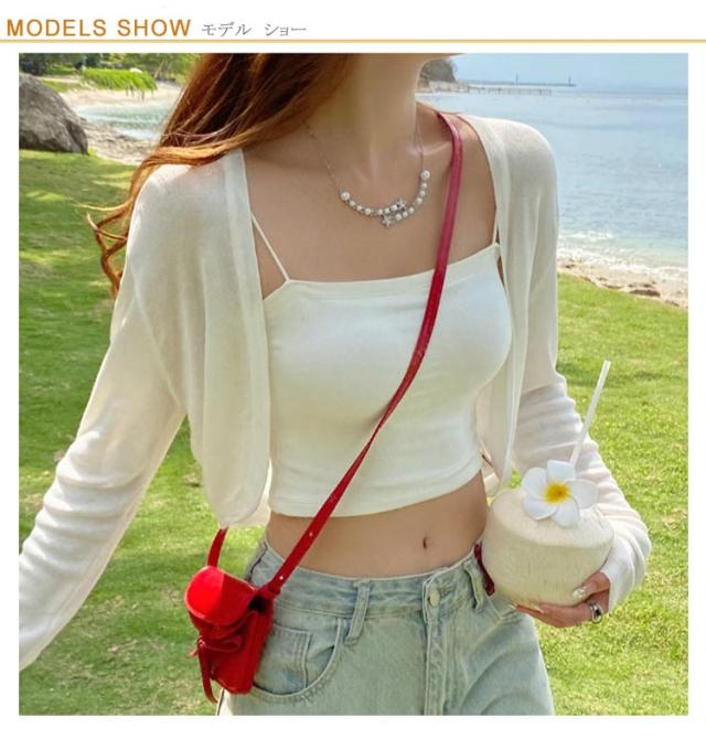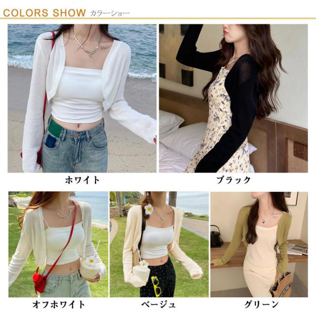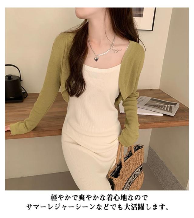 全5色 日焼け防止 冷房対策 カーディガン 長袖 ショート丈 レディース サマーニット 羽織り 薄手 クロップド きれいめ 春 夏 ボレロ ボレロカーディガン 無地 オフィス カジュアル 全5色 体型カバー 軽量