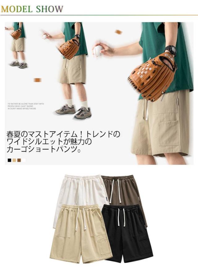 カーゴショートパンツ ハーフパンツ ショートパンツ 夏用 薄手 メンズ ワイドショーツ ポケット付き ショートパンツ 膝丈 5分丈パンツ カジュアル ボトムス 大きサイズ シンプル