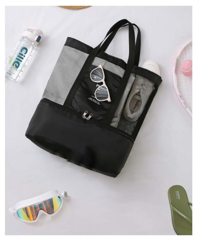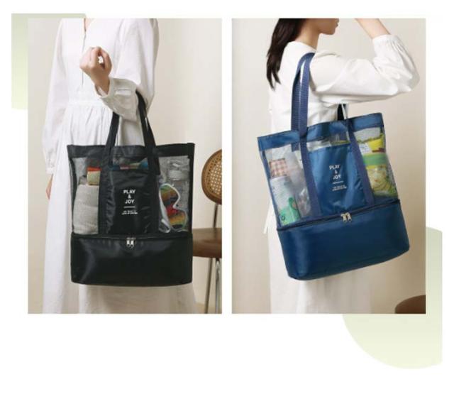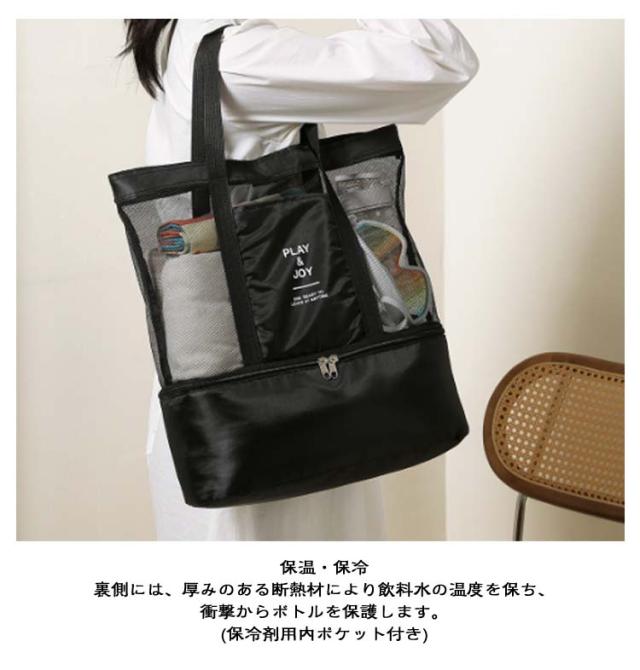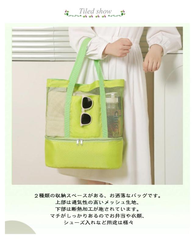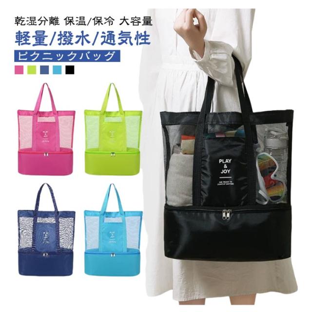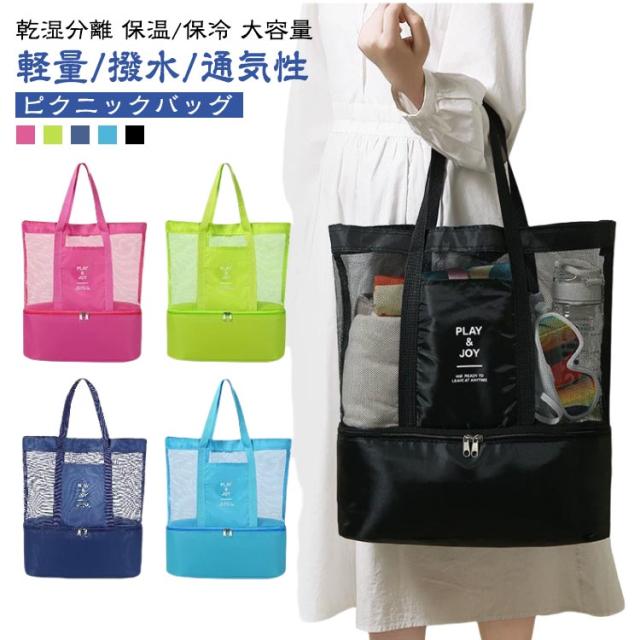 保温 保温 メッシュ ビーチバッグ 2段収納 ピクニックバッグ レジャーバッグ プールバッグ シューズケース 乾湿分離 バッグ トート 巾着 トートバッグ おしゃれ 大人 キッズ 子供 保冷 軽量 撥水 縦型 コンビニバッグ ランチバッグ スイムバッグ ジムバッグ