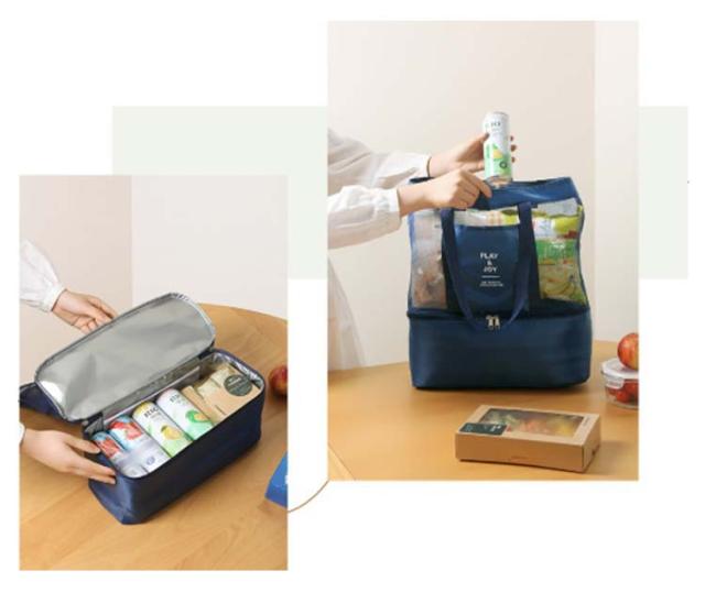 | 乾湿分離 保温/保冷 大容量 軽量/撥水/通気性 ピクニックバッグ 2種類の収納スペースがある、お洒落なバッグです。 上部は通気性の高いメッシュ生地、 下部は断熱加工が施されています。 マチがしっかりあるのでお弁当や衣類、シューズ入れなど用途は様々 01 シンプルなデザイン 男女兼用で使えるシンプルなデザインです。 02 大容量サイズ 大容量サイズなので、家族・お友達とのアウトドアピクニックに必要なものがすっぽり入る! 03 保温・保冷 裏側には、厚みのある断熱材により飲料水の温度を保ち、衝撃からボトルを保護します。 (保冷剤用内ポケット付き) 04 念入り仕上げ 丈夫に長く使えるように細かいステッチで繊細に仕上げました。 05 分かりやすい メッシュ構造の軽い素材なので必要な時にバッグの中をゴソゴソ探さずにサッと取り出せます。 | |
