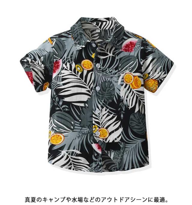 | 大人顔負けのオシャレな子供用のボーイズアロハシャツです。 カジュアルで夏シーズンのコーデに絶対入れたい着心地のやさしいアロハシャツ。 個性的流行の配色、華やかな柄でリゾート感がたっぷり。 真夏のキャンプや水場などのアウトドアシーンに最適。 汗を早く吸収して乾燥も早いので夏に快適に過ごせます。 これ一枚だけ着ると炎天下でも涼しい! | |