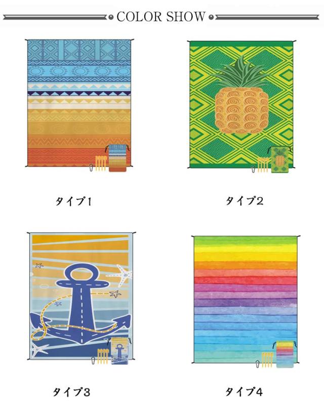 | おしゃれな柄の大きめビーチタオルです。 吸水性、速乾性に優れたタオル生地で、タオルとしてはもちろん日よけにも使えます。 家族みんなでゆったり過ごせる、約180x220cmの大きめサイズ。 マットの四隅のペグ穴に専用ペグを差し込めば、しっかり地面に固定でき、風が強い日もめくれ上がる心配がありません。 キャンプやピクニックはもちろん、運動会やフェス・屋外ライブでのご使用もおすすめ。 また、お部屋のインテリアにマッチするデザインなので、お家でラグのように使用することもできます。 | |