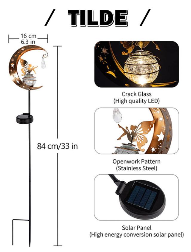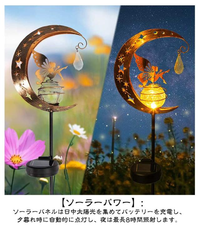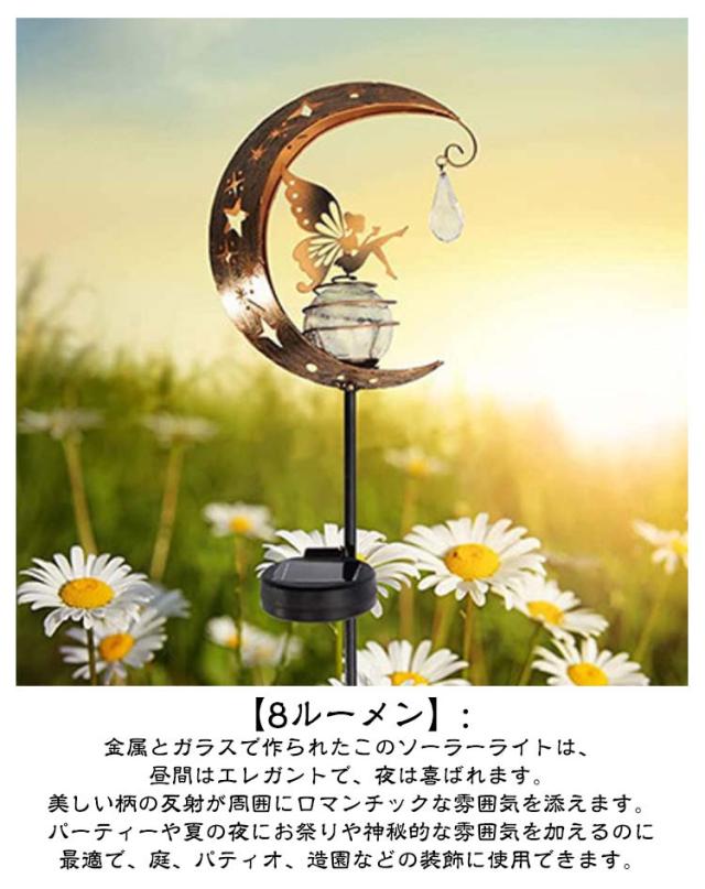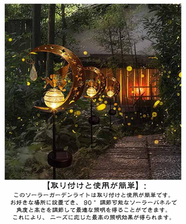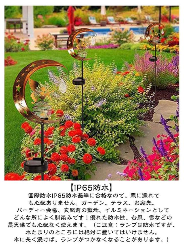 | IP65防水・太陽光充電・電気代0円! ガーデンソーラーライト 【ソーラーパワー】: ソーラーパネルは日中太陽光を集めてバッテリーを充電し、夕暮れ時に自動的に点灯し、夜は最長8時間照射します。 【自動オン/オフ】: ガーデンムーンフェアリーソーラーライトは自動オン/オフ機能を備え、夜間にオン、日没時にオフになり、手動の操作は不要です。 夜のお庭やパティオにチャーミングなタッチを加えるのに最適です。 【取り付けと使用が簡単】: このソーラーガーデンライトは取り付けと使用が簡単です。 お好きな場所に設置でき、 90 °調節可能なソーラーパネルで角度と高さを調節して最適な照明を得ることができます。 これにより、 ニーズに応じた最高の照明効果が得られます。 【IP65防水】 国際防水IP65防水基準に合格なので、雨に濡れても心配ありません。ガーデン、テラス、お庭先、パーディー会場、玄関前の敷地、イルミネーションとしてどんな所によく馴染みです!優れた防水性、台風、雪などの悪天候でも心配なく使えます。(ご注意:ランプは防水ですが、水たまりのところには絶対に置いてはいけません。水に長く浸けば、ランプがつかなくなることがあります。) 【8ルーメン】: 金属とガラスで作られたこのソーラーライトは、昼間はエレガントで、夜は喜ばれます。 美しい柄の反射が周囲にロマンチックな雰囲気を添えます。 パーティーや夏の夜にお祭りや神秘的な雰囲気を加えるのに最適で、庭、パティオ、造園などの装飾に使用できます。 【ロマンチックな雰囲気】: 美しい柄の反射が周囲にロマンチックな雰囲気を作り出します。 | |