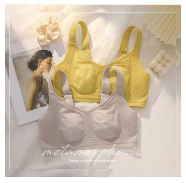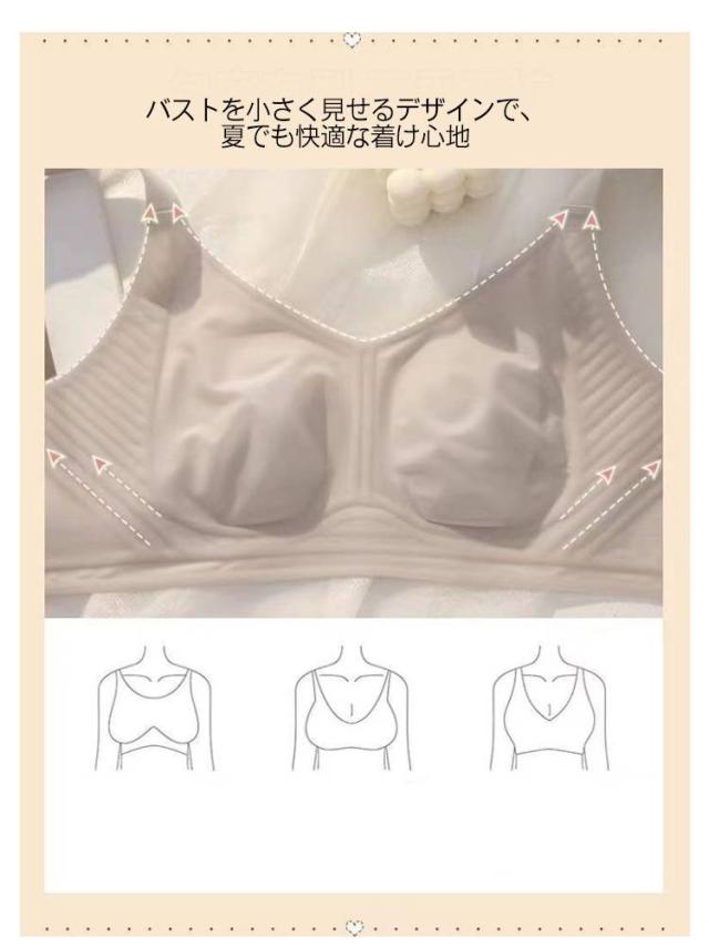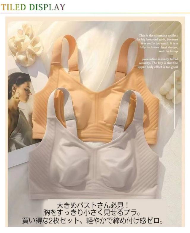 超薄 小さく見せるブラジャー 夏用 胸が小さく見えるブラ シームレスブラ ノンワイヤー 2枚セット レディース ブラジャー 補正下着 薄手 インナー