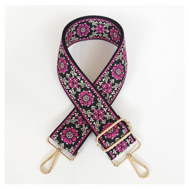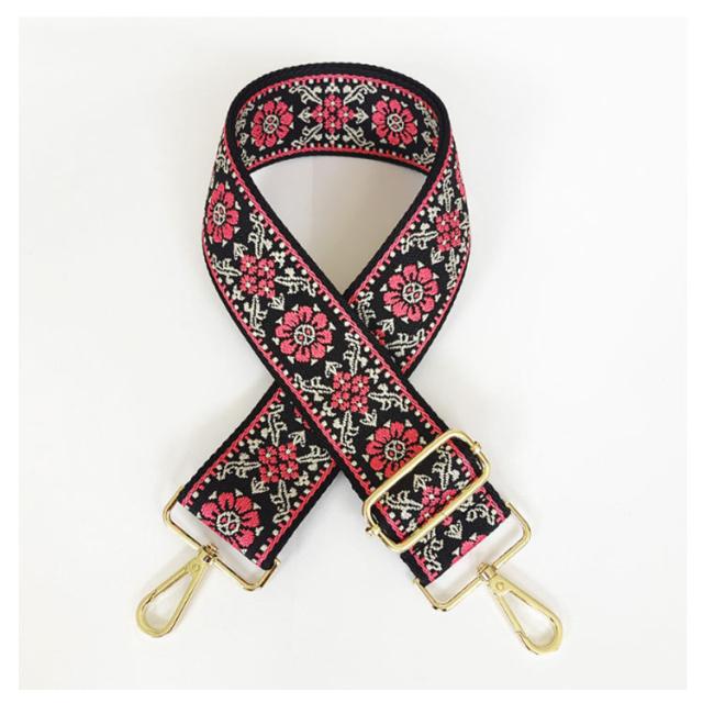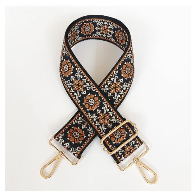 5センチ 刺繍 金具 ショルダーベルト 帆布 刺繍 スマホ ベルト バッグ用 エスニック バッグストラップ 交換用 革 太め 付け替え 長さ調節 長い 幅広 鞄 カバン 肩紐 おしゃれ かわいい キャンバス カバン用