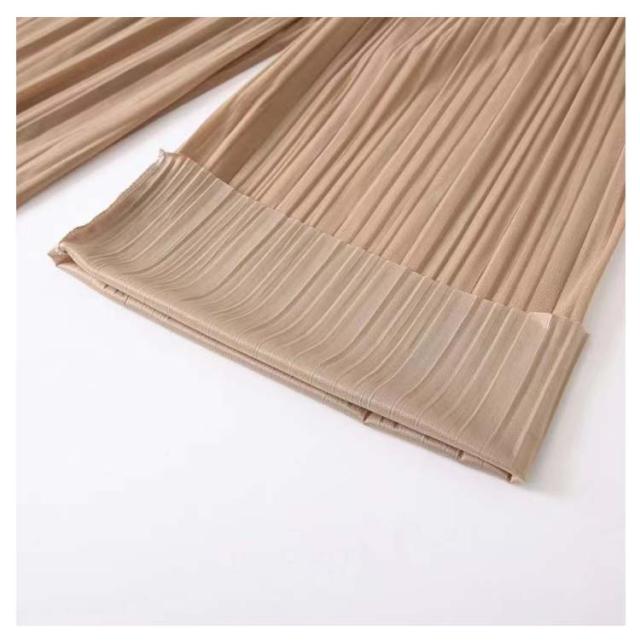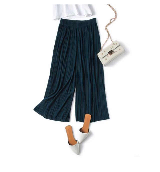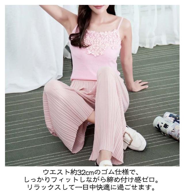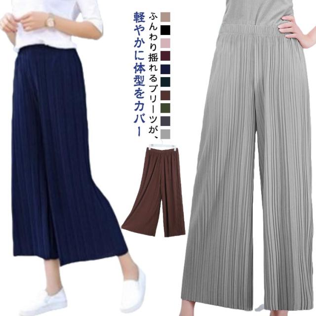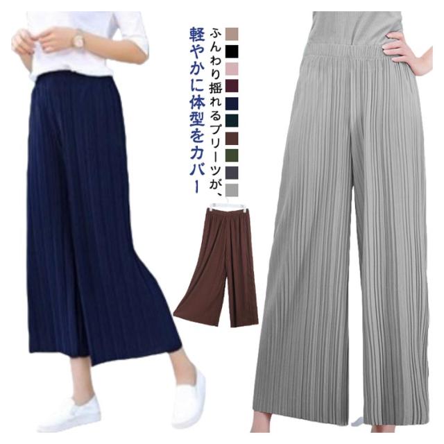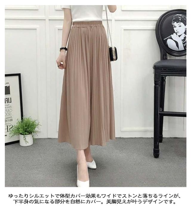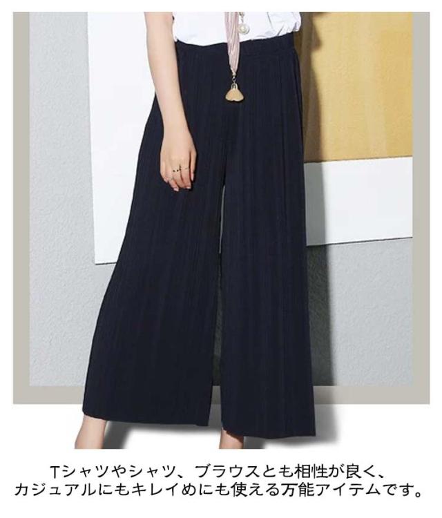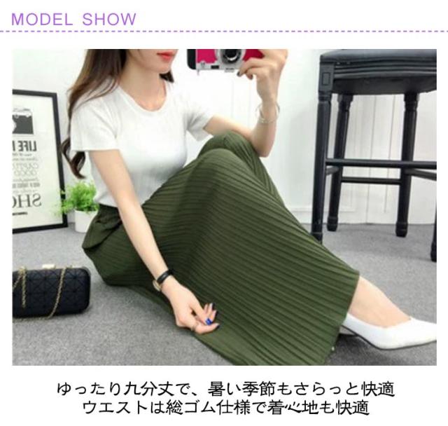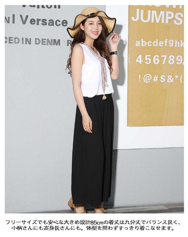 | ふんわり揺れるプリーツが、軽やかに体型をカバー ゆったり九分丈で、暑い季節もさらっと快適 ウエストは総ゴム仕様で着心地も快適 ウエスト約32cmのゴム仕様で、しっかりフィットしながら締め付け感ゼロ。リラックスして一日中快適に過ごせます。 ゆったりシルエットで体型カバー効果も◎ ワイドでストンと落ちるラインが、下半身の気になる部分を自然にカバー。美脚見えが叶うデザインです。 フリーサイズでも安心な大きめ設計 85cmの着丈は九分丈でバランス良く、小柄さんにも高身長さんにも◎。体型を問わずすっきり着こなせます。 Tシャツやシャツ、ブラウスとも相性が良く、カジュアルにもキレイめにも使える万能アイテムです。 | |
