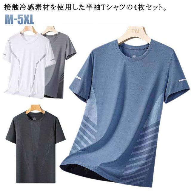 半袖 4枚セット レディース 接触冷感 夏用 4枚セット Tシャツ クルーネック トップス UVカット スポーツ メンズ 男女兼用 メッシュ スポーツ ストレッチ 通気性 ゴルフインナー 涼しい 作業服 作業着 ランニング