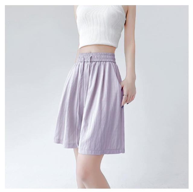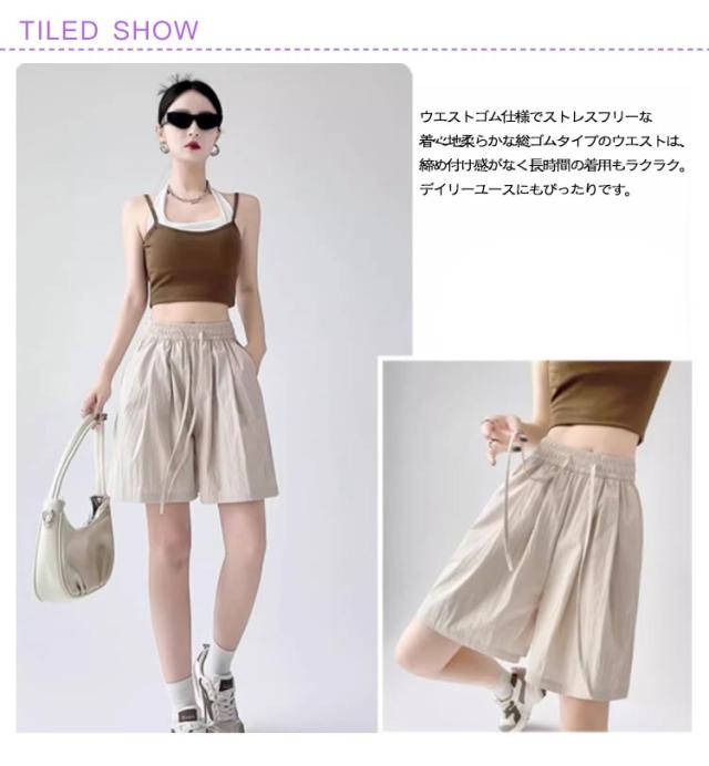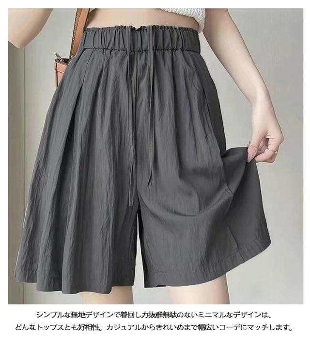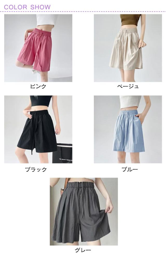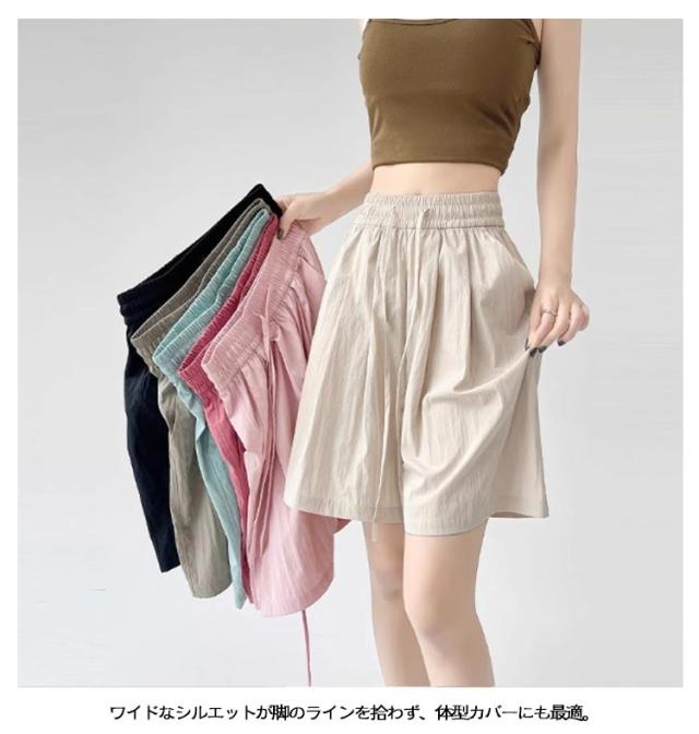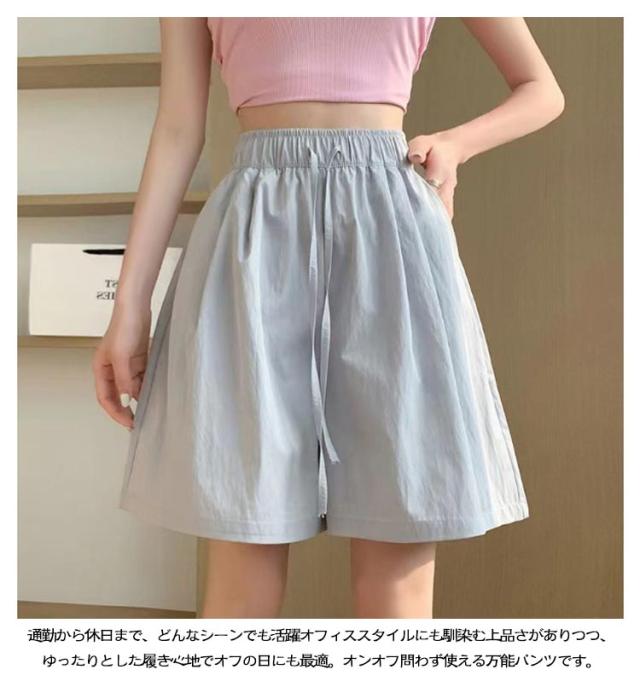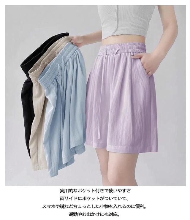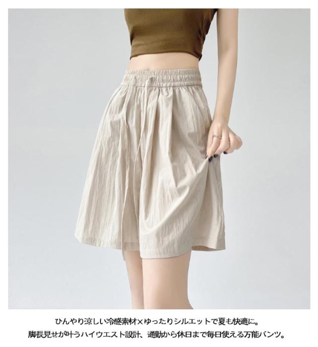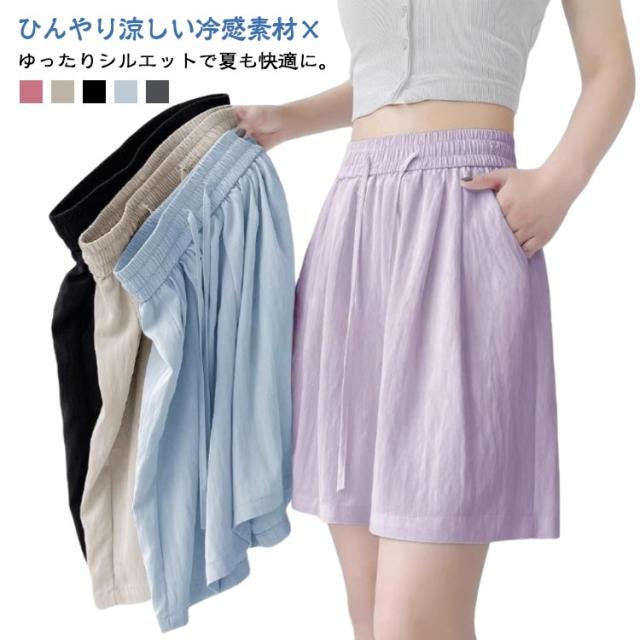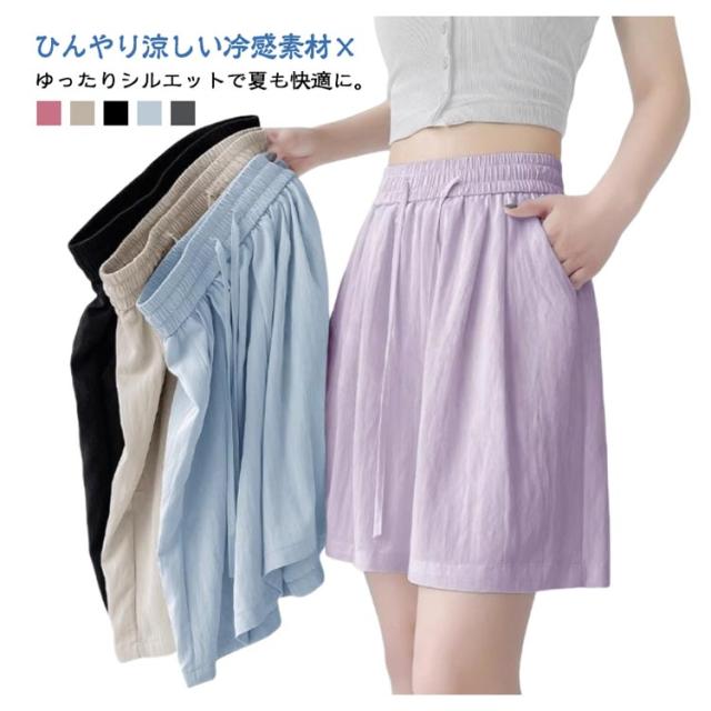薄手 ショートパンツ レディース 夏 ハイウエスト ゆったり ショートパンツ カジュアルパンツ 体型カバー ルームウェア きれいめ 通勤 接触冷感 軽量 ポケット付き ウエストゴム 韓国風 オフィス リラックスウェア おしゃれ 無地