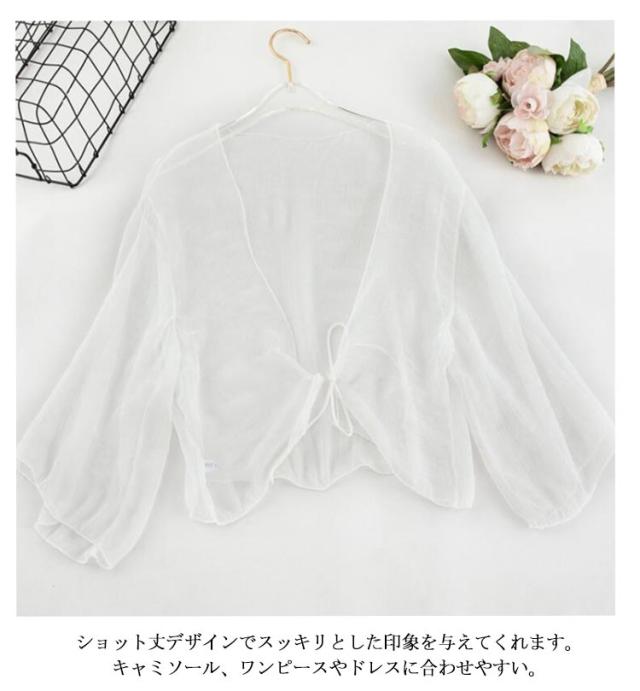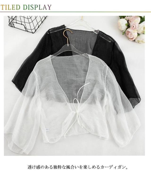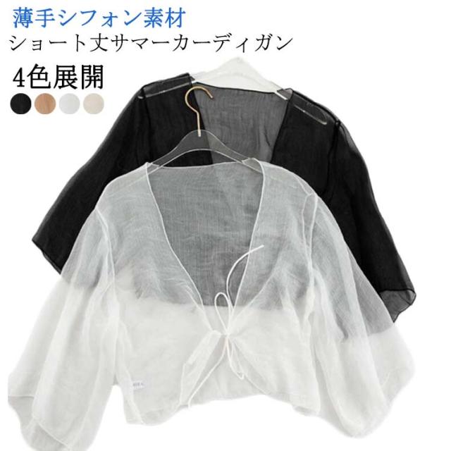 サマーカーディガン ショート丈 ボレロ レディース 透け感 シフォン 夏 サマーカーディガン UVカット おしゃれ 冷え防止 春 冷房 紫外線対策 シアー 羽織 半袖 カーディガン 秋 リボン 薄手 シンプル 無地 エアコン対策 冷房対策 カジュアル きれいめ