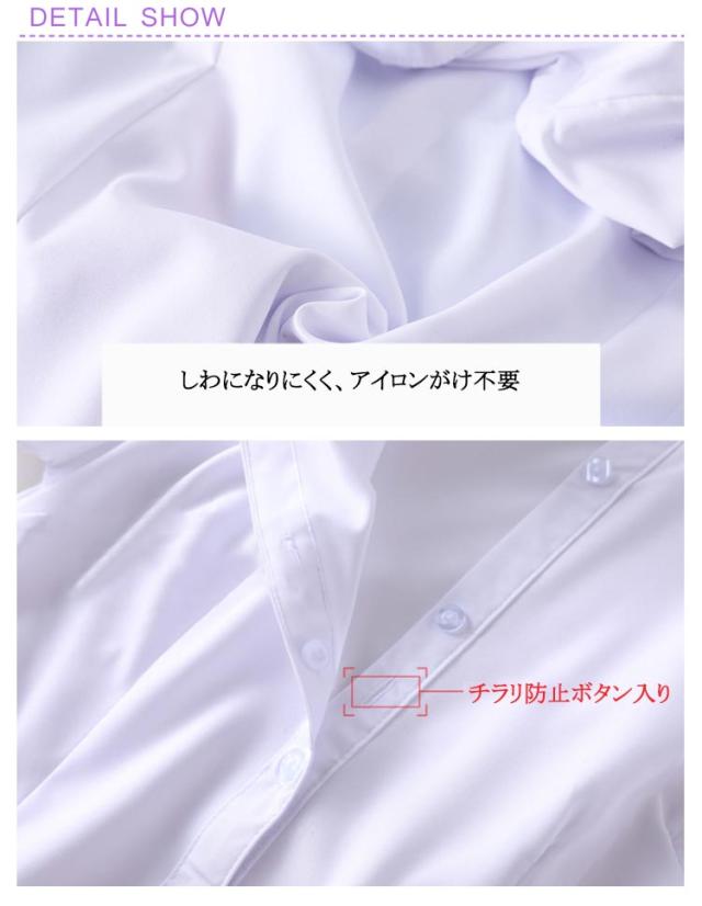 | 2枚セット!ノーアイロン!チラリ防止ボタン入り! 学校や職場で大活躍するワイシャツです。 快適な生地や通気性が保たれ、形態安定性もキープします。 パンツスタイルにも、スカートスタイルでも綺麗に着こなせます。 自宅で洗濯できて、何度洗濯してもくたっとならず、アイロン不要。 オフィスにはもちろん、オフでのカジュアルスタイルにも着回せる何枚持っていても困らない定番アイテムです。 | |