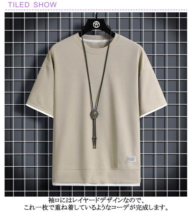半袖 ワッフル ティーシャツ メンズ 夏服 無地 ワッフル生地 レディース 通気性 重ね着風 トップス 半袖Tシャツ お洒落 ワッフルTシャツ Tシャツ カットソー Tシャツ tシャツ カジュアルTシャツ 20代 30代 40代 50代 60代 メンズファッション 夏 父の日