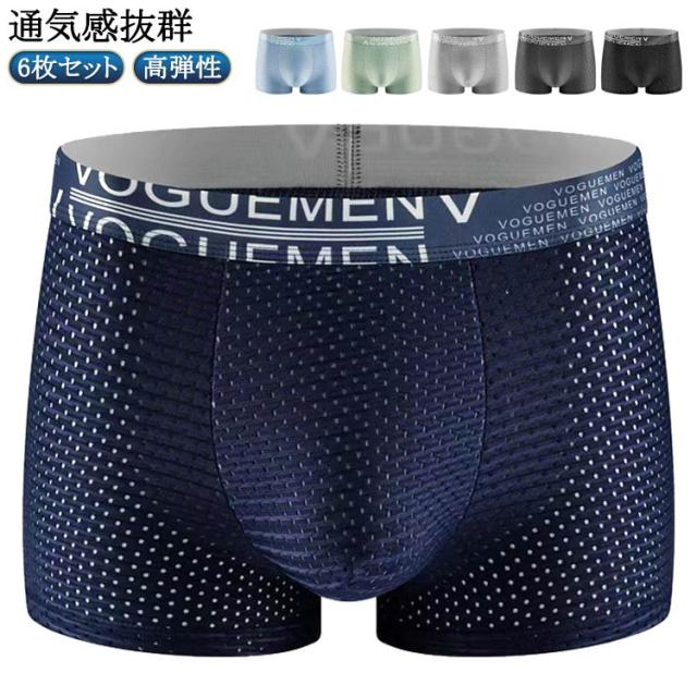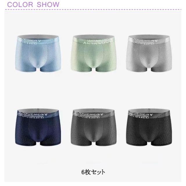 メンズ ボクサーパンツ 下着 前閉じ 接触冷感 蒸れない 6枚セット 夏用 ボクサーブリーフ メッシュ 高弾性 パンツ 立体構造 通気感抜群 ボクサーパンツ 男性 下着 通気 ストレッチ メッシュボクサー