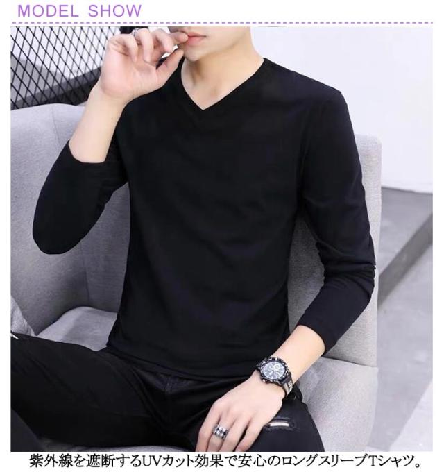 M スポーツ 冷感Tシャツ 長袖 3枚セット インナー 長袖 涼しい 冷感 冷感インナー Uネック トップス 長袖Tシャツ 3枚セット Vネック メンズ 薄手 S アイスシルク L XL 2XL 3XL 4XL 5XL