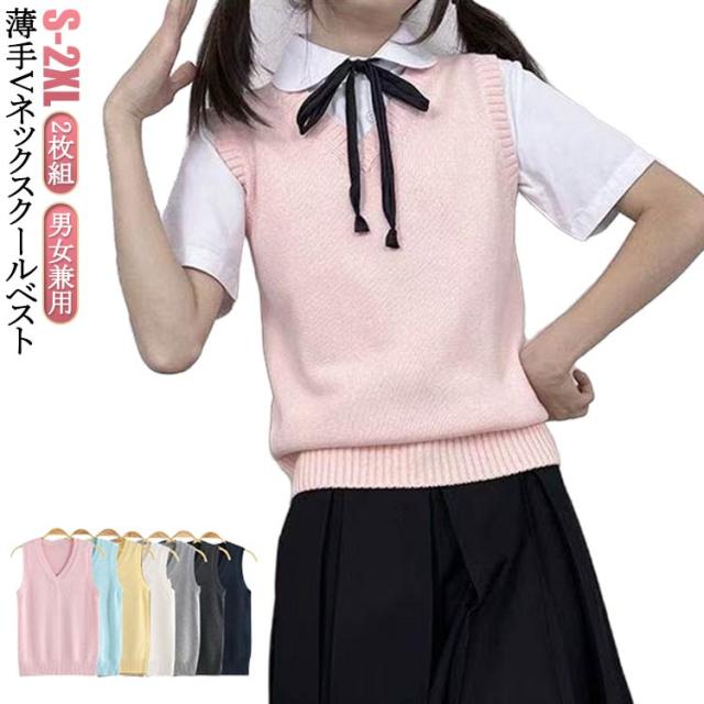 セーター ベスト 夏用 JK 涼しい 男女兼用 2枚組 ノースリーブ ニットベスト 薄手 無地 ニット Vネック ノースリーブ 女子 制服 シンプル 通学 制服ベスト 中学 秋 春 夏 無地 冬 学生 レディース スクール かわいい チョッキ スクールベスト グレー 紺