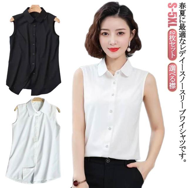 ブラウス タンクトップ シャツ 袖なし スーツ 大きいサイズ L ブラウス 襟付き 選べる襟 レディース Yシャツ インナー OL 夏 ノースリーブ タンクトップ 通勤 レイヤード 無地 春 S M シャツブラウス XL 2XL 3XL 4XL 5XL 2枚セット