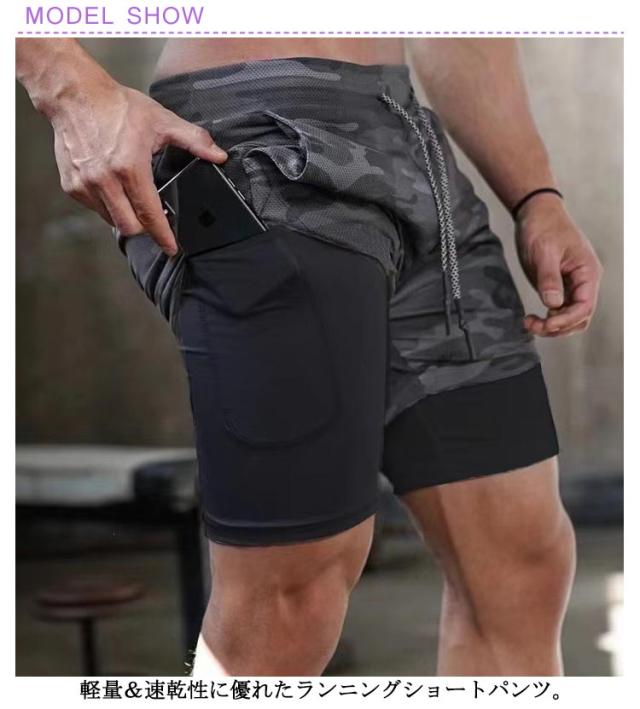 短パン ランニングパンツ 通気 通気 インナー付き インナータイツ付き ショートパンツ ランニング 2枚セット ハーフパンツ 吸汗速乾 ジャージ インナー付き アンダーウェア ストレッチ ジム スポーツウェア ランニングウェア