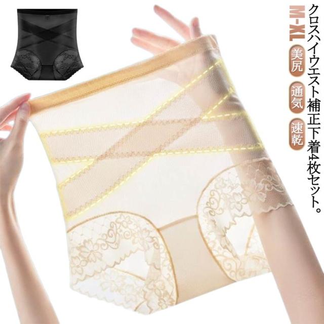 ガードル ヒップアップ補正下着 4枚セット 美尻 ハイウエストショーツ 補正下着 レディース お腹引き締め クロス加圧ハイウエスト補正下着 4枚セット 十字網状デザイン 薄手 ストレッチ ヒップアップ 通気 速乾