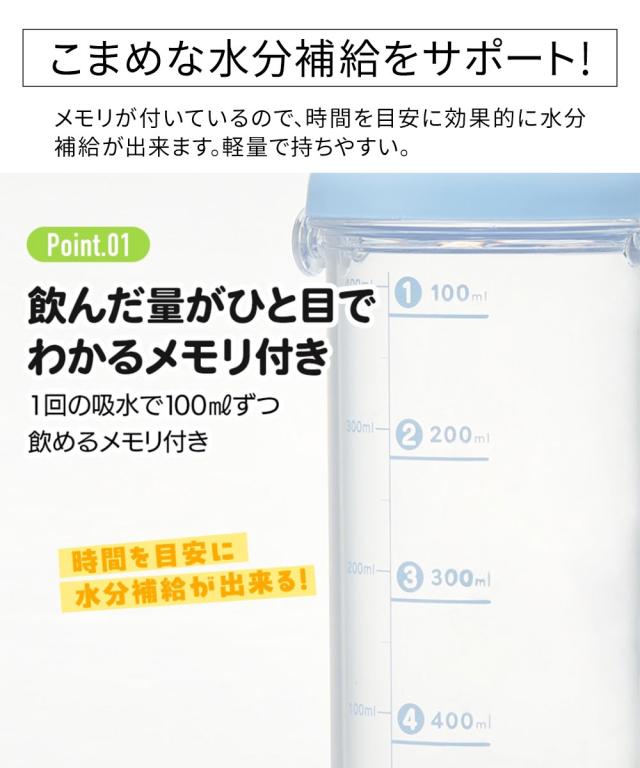 メモリが付いているので、時間を目安に効果的に水分補給が出来ます。