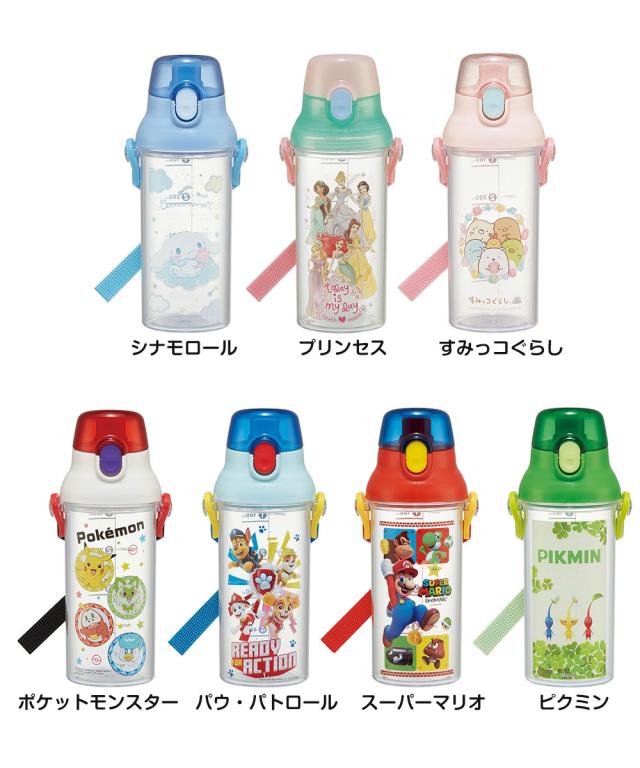 \今だけ10%OFF/ 水筒 キッズ 480ml 健康クリアマーカーボトル 直飲み ワンプッシュ ストラップ付き メモリ付き 食洗機対応 子供 子ども 男の子 女の子 男子 女子 保育園 幼稚園 遠足 常温 幼児 こども ディズニー サンリオ PSB5TRC