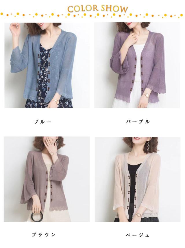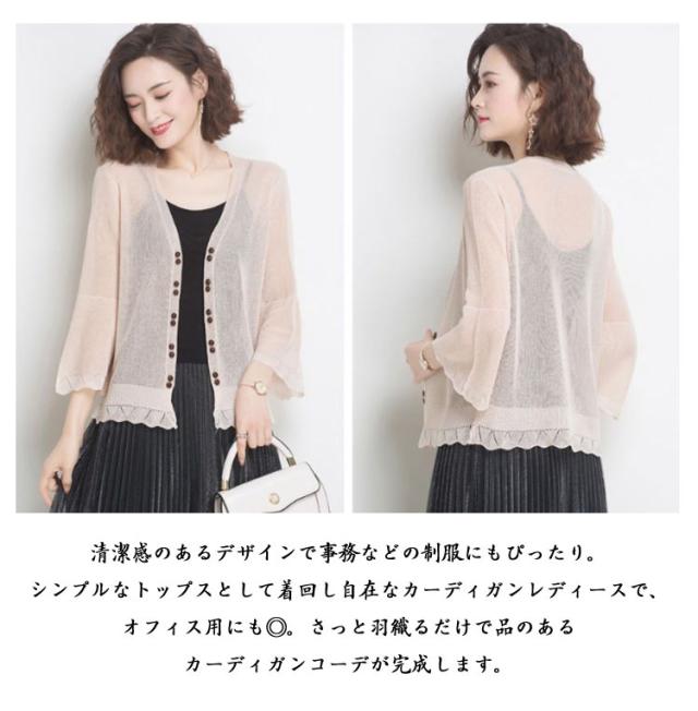 | 紫外線対策に、薄手のシアーカーディガン♪ シンプルながらも着回し力抜群の一枚、夏の冷房対策としても最適です 清潔感のあるデザインで事務などの制服にもぴったり。シンプルなトップスとして着回し自在なカーディガンレディースで、オフィス用にも◎。さっと羽織るだけで品のあるカーディガンコーデが完成します。 学生さんは普段の通学アイテムとして。お勤めの方にはオフィス・通勤・休日のお出かけのお供として。 選択する多くの色があります。プレゼントとして家族、友達、同僚に送る絶好の選択です。 | |