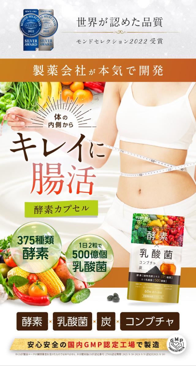 酵素×乳酸菌 サプリメント 腸活 生酵素 炭 コンブチャ 食物繊維 製薬会社が開発 MCTオイル ローヤルゼリー チアシード 送料無料 ギフト プレゼント PURELAB