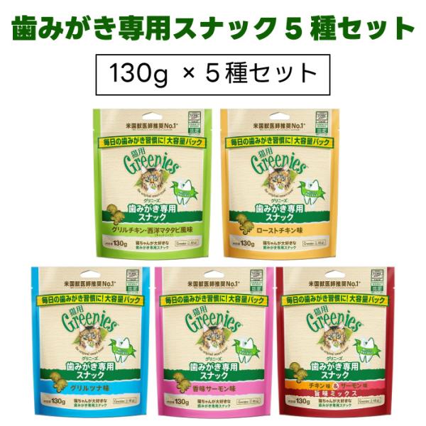 Greenies 猫用グリニーズ 歯みがき専用スナック 130g 5種セット キャットフード 猫 おやつ スナック オーラルケア 歯磨き 歯垢 歯石