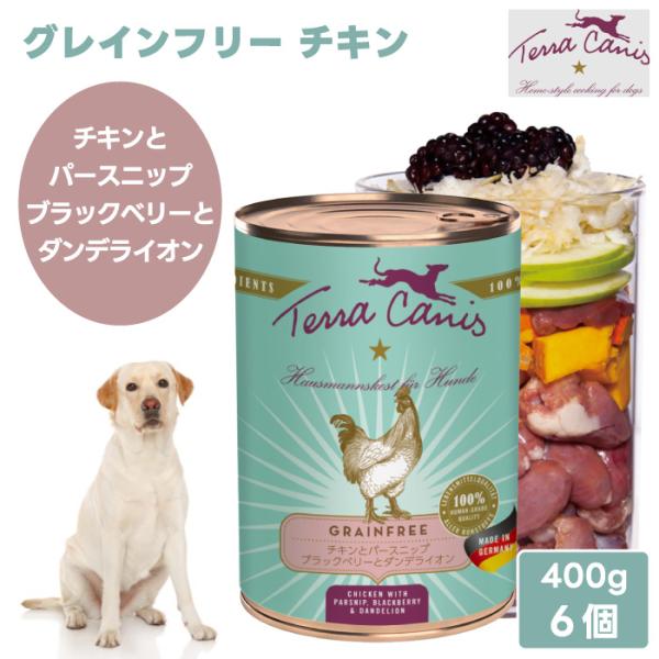 Terra Canis テラカニス グレインフリー チキン チキンとパースニップ ブラックベリーとダンデライオン 400g 6個 2400g ドッグフード 缶詰 ウェットフード