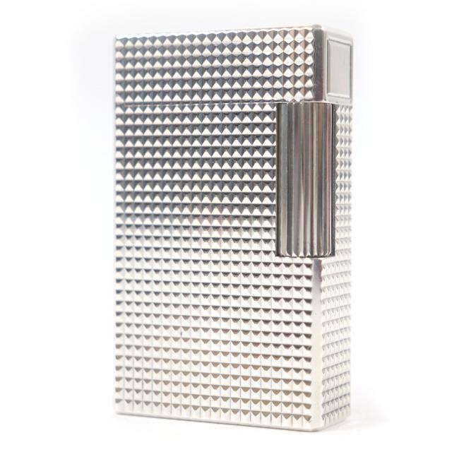外装極美品□Dupont デュポン ライン1 ロング ダイヤモンドヘッド スクエア ガスライター 喫煙具 シルバー フランス製 メンズ 着火不可