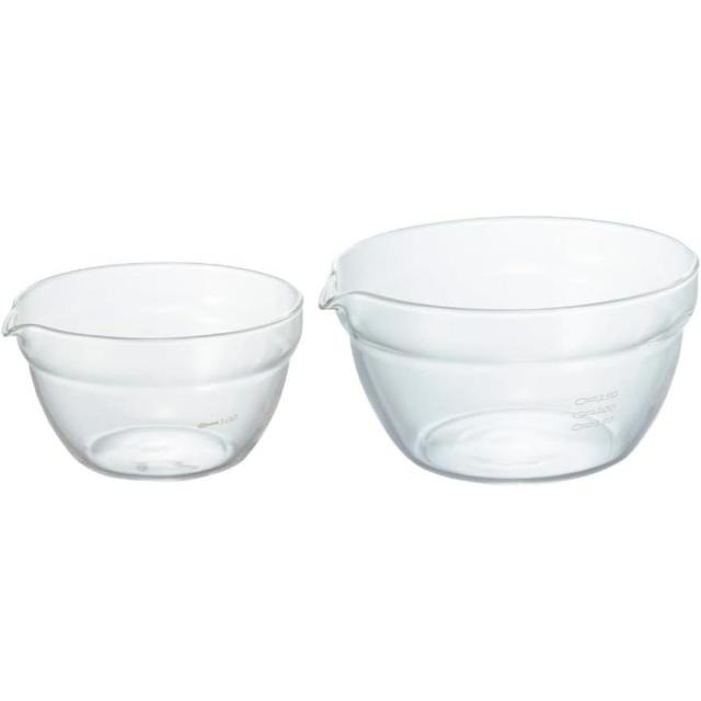 便利な注ぎ口と持ちやすい形状で、耐熱ガラス製の美しいボウルが調理から食卓まで活躍する2サイズセット