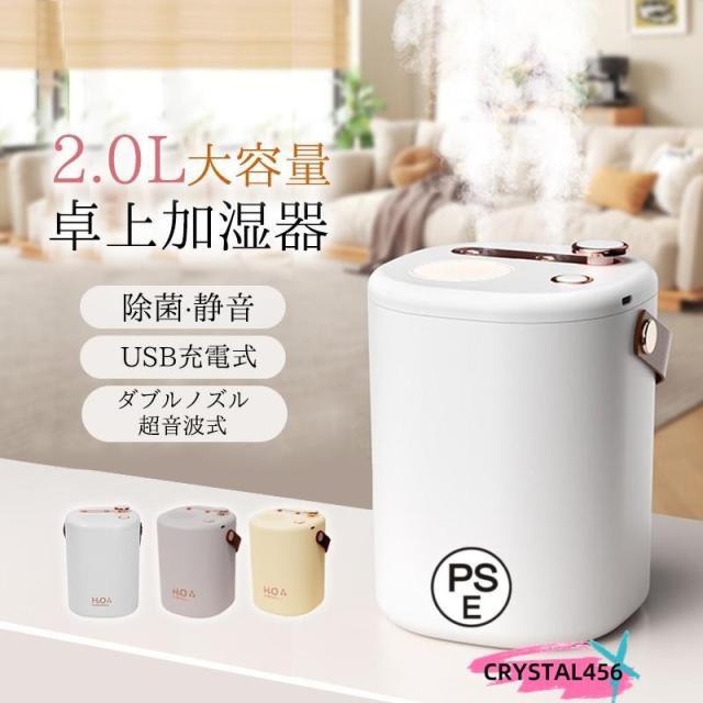 加湿器 小型 卓上 ミニ加湿器 超音波 空気清浄機 大容量 2L USB充電式除菌 コードレス 上部給水式 オフィス 部屋 寝室 車用 乾燥対策