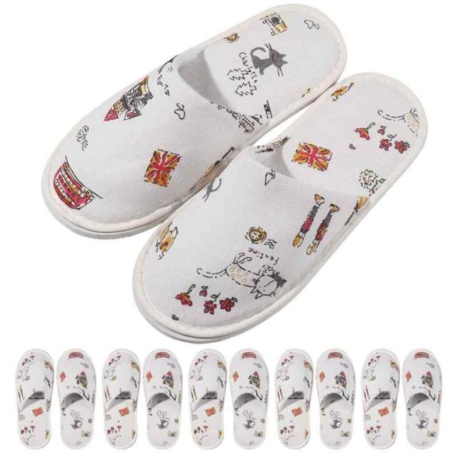 [CQQDOQ] スリッパ 使い捨て 室内スリッパ 来客用 28cm 綿麻 軽量 厚底 プリントのスリッパ 滑り止め エステ ホテル用 業務用 旅行用 自宅用 5足入セット 個包装 (ホワイト)