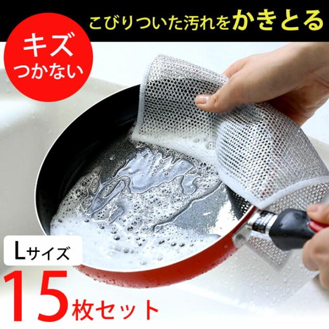 食器洗い メッシュクロス 大判 15枚入り スポンジ たわし 台所 シンク 食器 油汚れ かきとるメッシュクロス