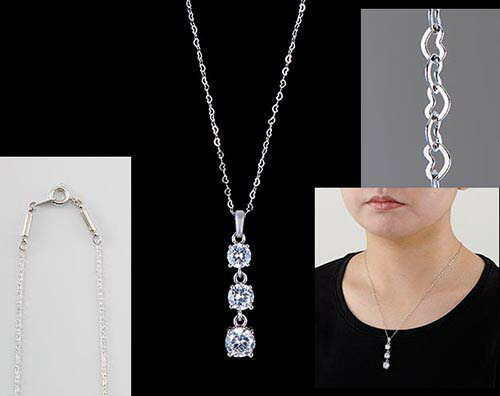 *煌きの「3石大粒キュービックジルコニア」にフェミニンな「ハートのチェーン」 が素敵な磁気ネックレスです。