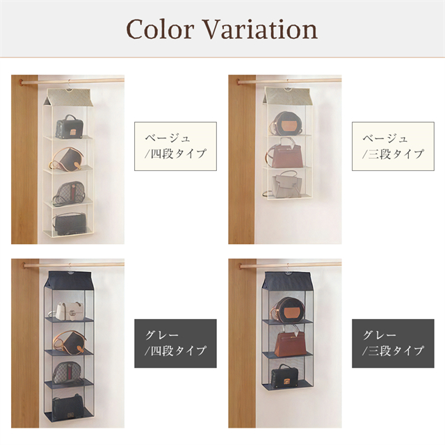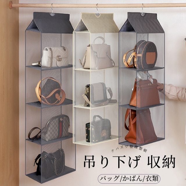 吊り下げ収納 バッグ収納 バッグ カバン 3段/4段 折りたたみ クローゼット 収納 カバン収納 吊り下げ式 衣類収納 収納ケース 収納棚 衣類 見せる収納