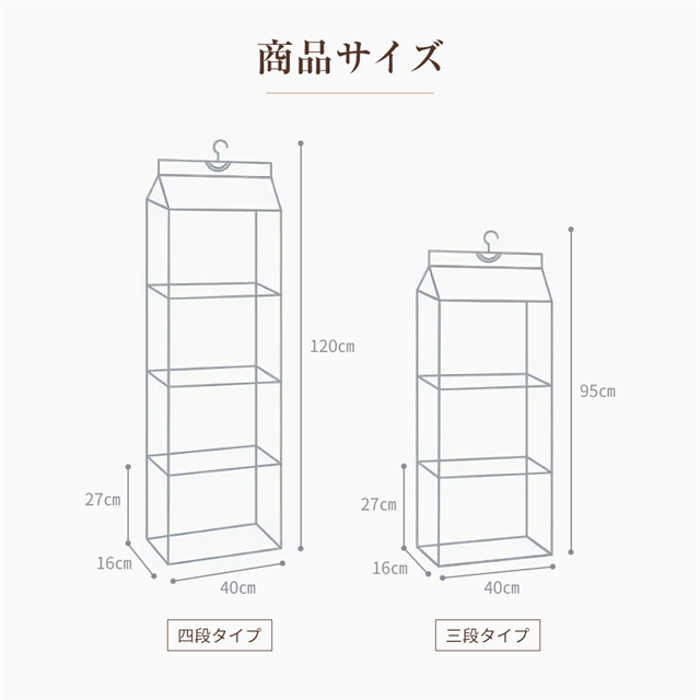 ・掛けるだけで小物類から靴箱、ハンドバッグ、靴、財布、ベビー服、おもちゃまで何でも収納できます。
