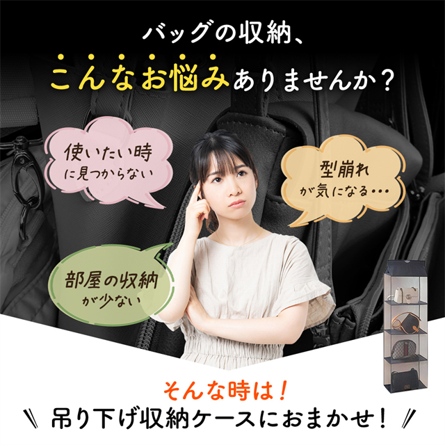 ・ハンドバッグなど、散らかりやすいバッグをすっきり収納できる便利な収納ホルダーです!