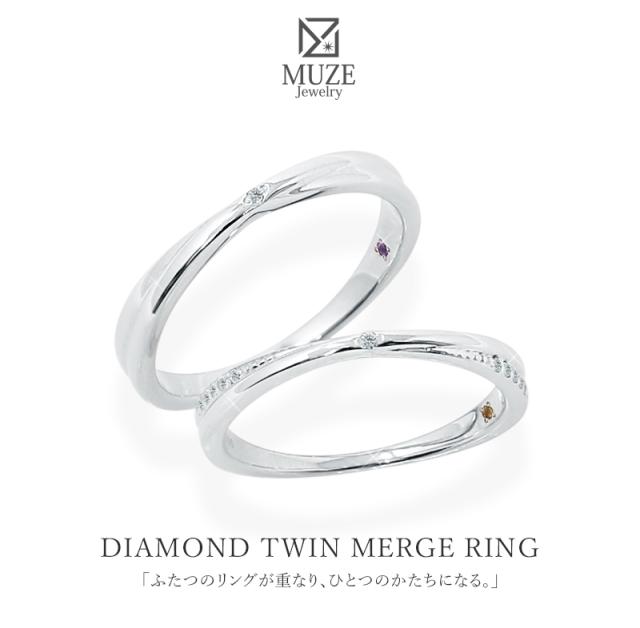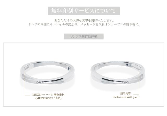 MUZE JEWELRY リング 指輪 結婚指輪 ダイヤモンド ペアリング シークレットストーン シルバー925 プラチナ仕上げ ラインストーン スワロフスキージルコニア使用 刻印 名入れ made in japan