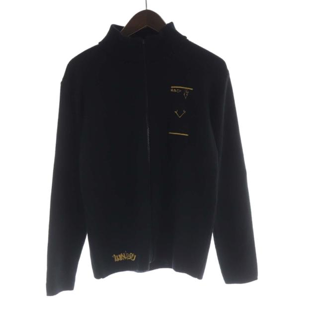 【中古】アニエスベー agnes b. ブルゾンジャケット ジャンパー ニット 刺繍 ハイネック 長袖 黒 ブラック /RO