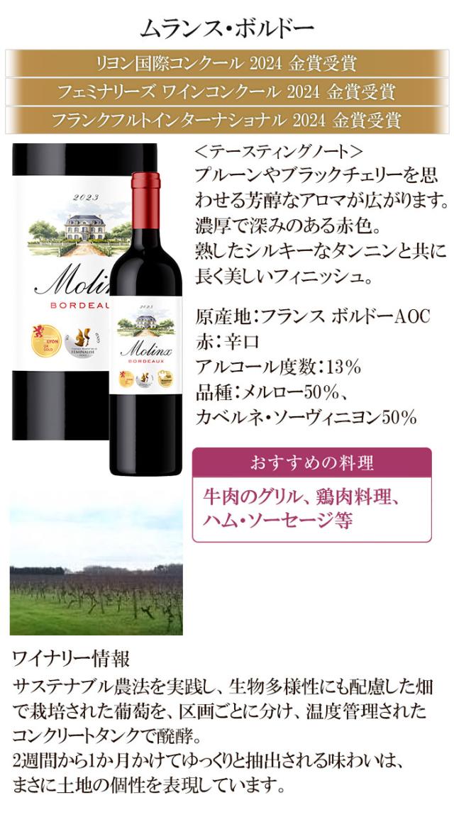 【 3冠金賞の美しいボルドー 】ワイン 赤ワイン ムランス・ボルドー フランス 辛口 赤 フランスワイン ボルドーワイン 金賞