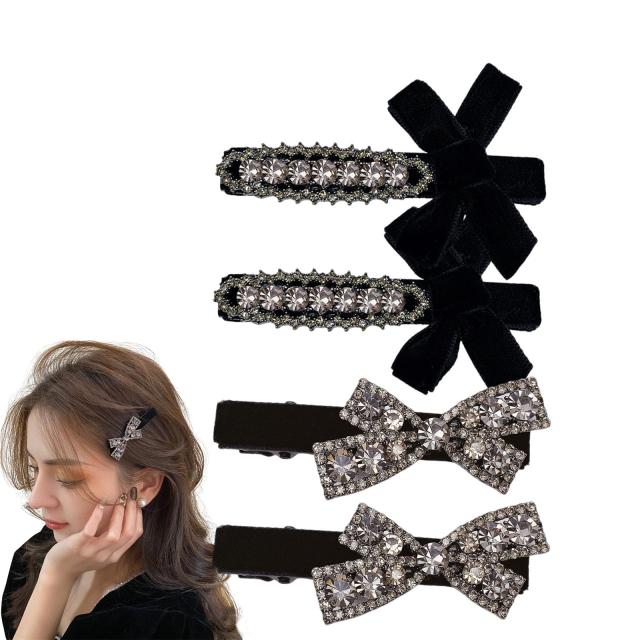 ◆商品名:shefunヘアピン 前髪 ヘアクリップ 黒 前髪クリップ おしゃれ 4個セット 6.5cm ミニクリップ 可愛い レディース 前髪ピン ベロア パッチ
